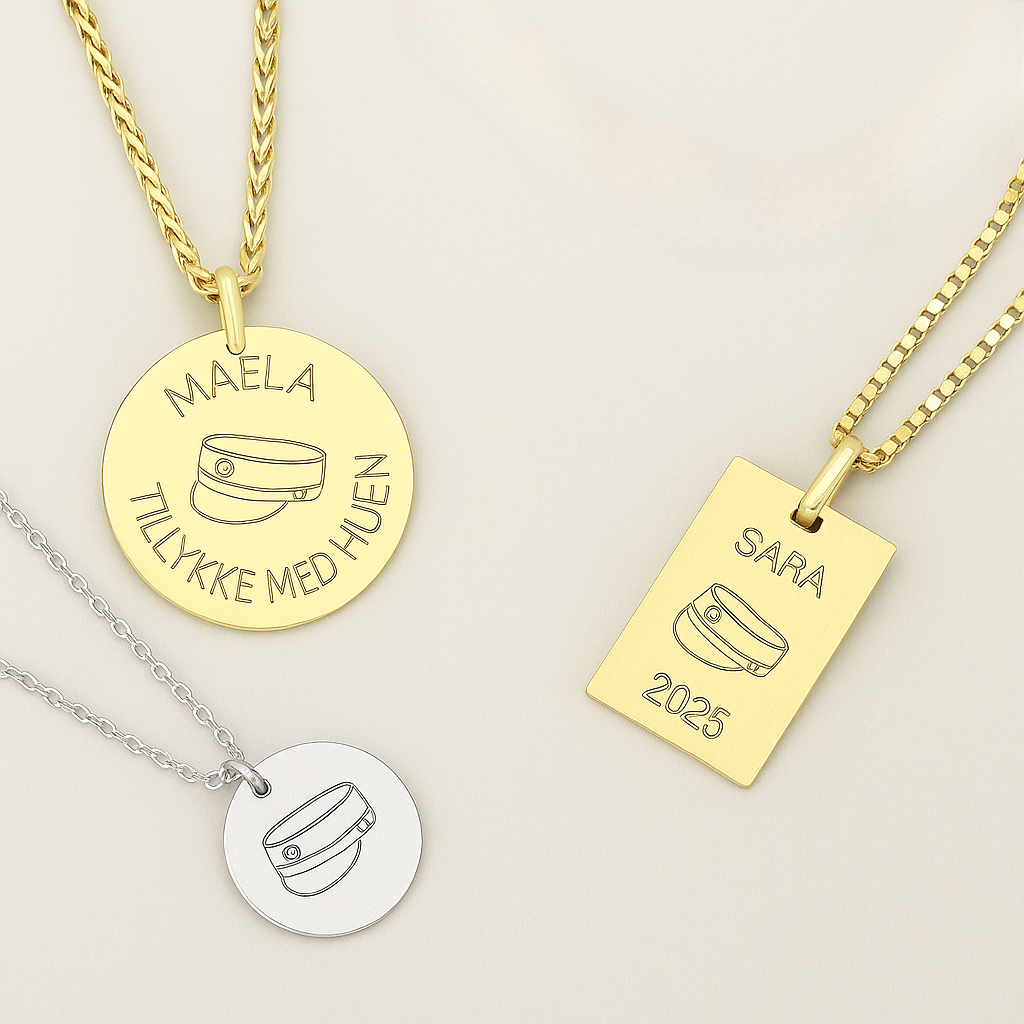 Vælg mellem elegante designs i guld eller sølv – med gratis gravering af navn, årstal eller en særlig hilsen.