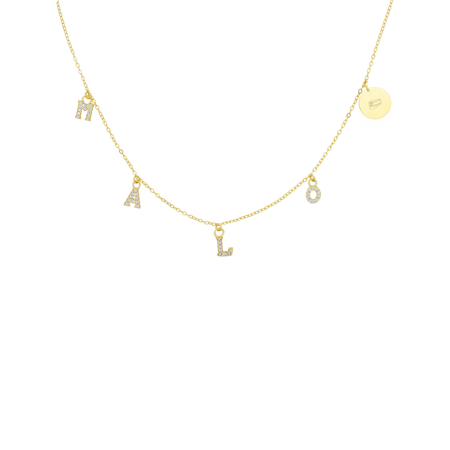 Denne halskæde er fremstillet af sterlingsølv (Silver 925) og er belagt med 18 karat guld for en luksuriøs og holdbar finish. Som en ekstra detalje er bogstaverne dekoreret med smukke zircon-sten, der giver et funklende udtryk, som minder om ægte diamanter. Kombinationen af kvalitetsmaterialer og elegant design gør halskæden både stilfuld og slidstærk.